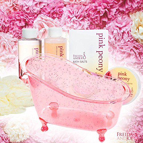 The Bath Pink Peony Spa Gift Set in a pink glitter vintage-style bathtub emanates youthful joy and sophistication.