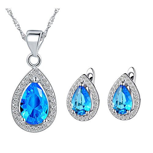 -. Feature : Fashion Jewelry Set includes: Necklace, Earrings. Necklace Length: 45cm / The Crystal is accented with an outline of round white cubic zirconia. / Show your charm with this Jewelry set whatever in anniversaries, graduations, birthdays,wedding,engagement, suitable for most women and girls to wear / Unique Design, look great with any outfit; Perfect gifts your mom,sister,your special someone or yourself. / Come packaged in a beautiful elegant jewellry box, making them wonderful.