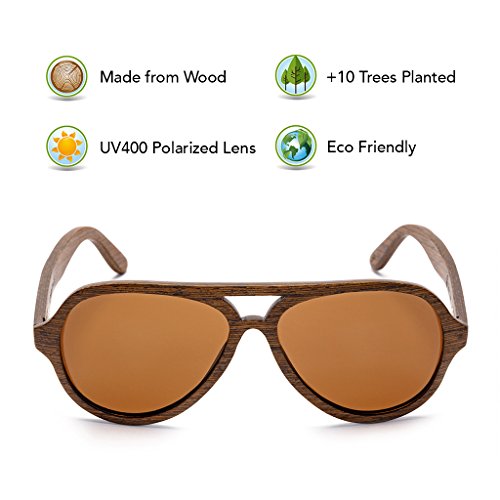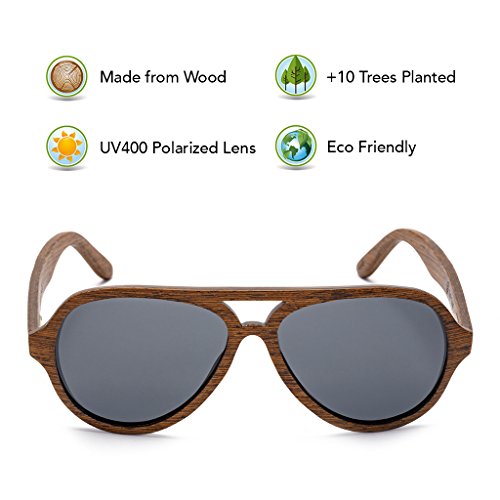 TREE TRIBE MISSION Tree Tribe is a lifestyle brand that represents the Earth. Our mission is to contribute to global positive impact projects, while making cool natural styles. For every pair of sunglasses sold, we plant 10 trees! Trees produce oxygen, help the environment, provide homes for wildlife, and boost the health of the planet. On a local level, the trees we plant provide food, shelter, and economy to local communities. We work with the most reputable organizations to plant trees with. NATURAL STYLE Whether you're in beach gear or suited up in the city, our natural aviators shine with unique style. Layered compressed wood in alternating colors adds style points, while polarized lenses and stainless steel flex hinges complete the glasses with a premium experience. HAND CRAFTED SUNGLASSES Each pair is assembled by hand after coloring and compressing the layers. We use high quality certified polarized lenses and flexible hinges that hyper-extend for a comfortable fit. Tree Tribe Aviators are super light weight and rest easily on your face. 100% SATISFACTION GUARANTEE We're serious about our quality - If you don't love our sunglasses, we'll gladly refund you. We offer a 100% money back guarantee on all purchases. INCLUDES - Authentic Tree Tribe Wooden Sunglasses - Microfiber Pouch - Bamboo Storage Case Check our full store at amazon.com/shops/treetribe 0 |