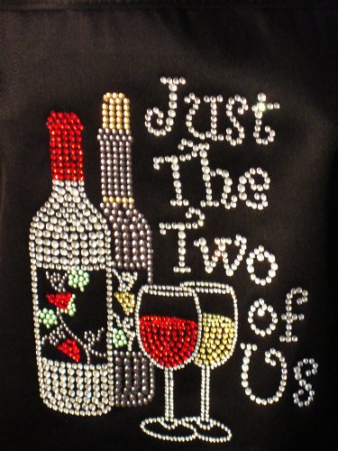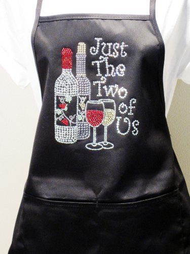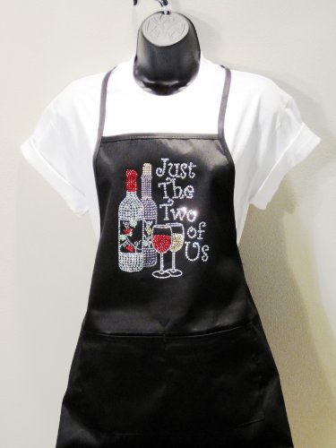 " Just the Two of Us" - Classic Black Apron - Rhinestone - Poly Blend Two Pocket Apron