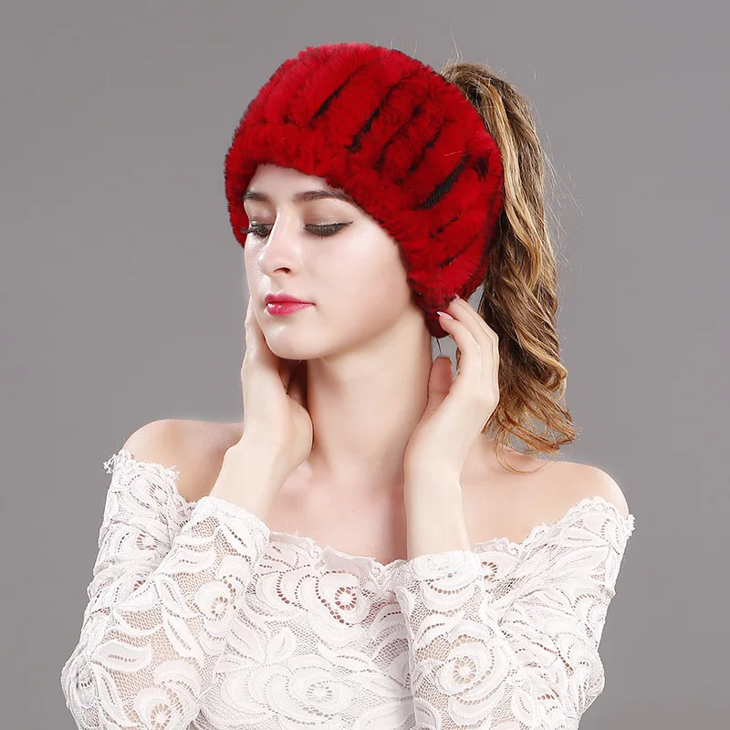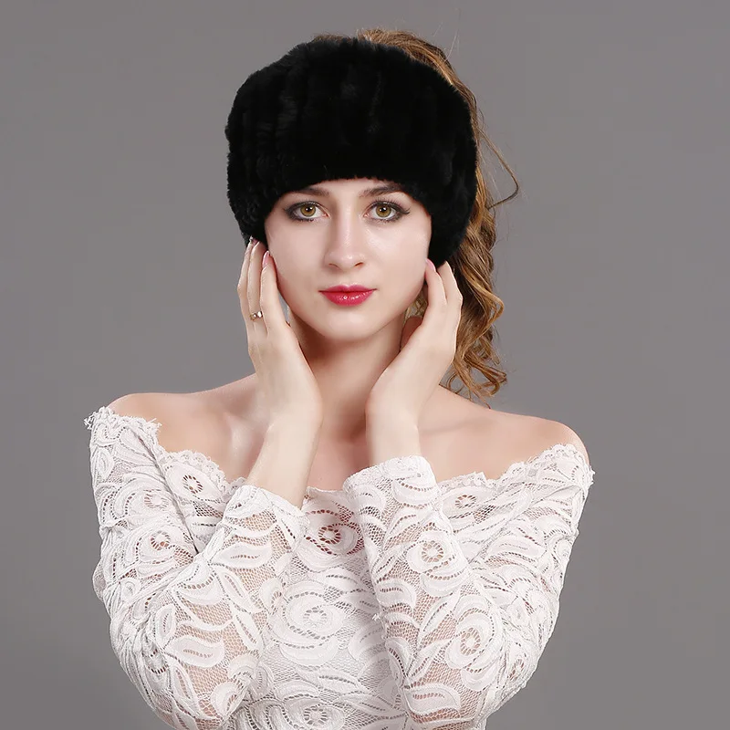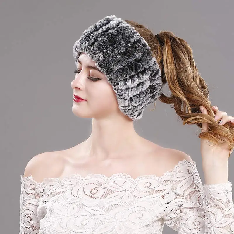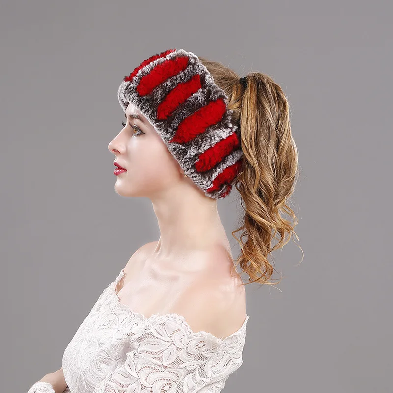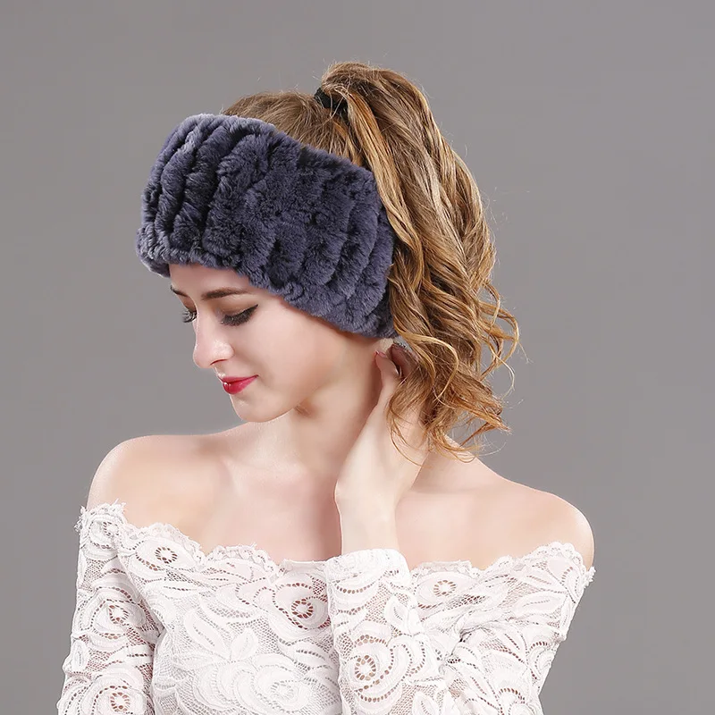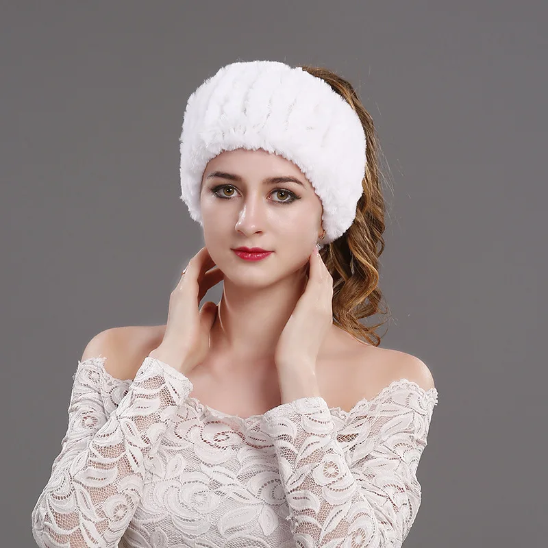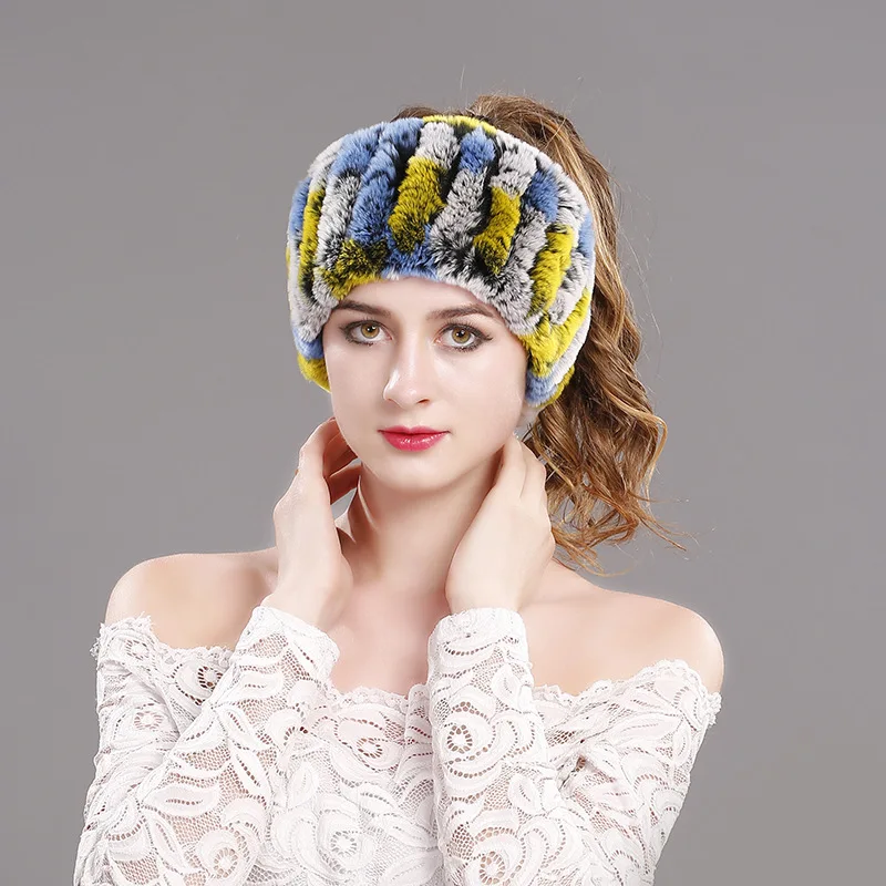 knitted rabbit fur head warmer:Headbands fur rings