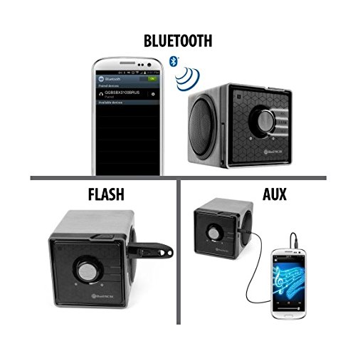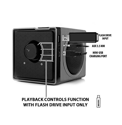 Tech Specs- Bluetooth Version: v2.1 + EDR / Speaker Power: (3Wx2) 6W RMS; 12W Peak / Audio Input: Bluetooth ; 3.5mm Audio Port ; USB Port / Music Runtime: 4-6 hours / Dimensions: 5 x 4.5 x 4 inches