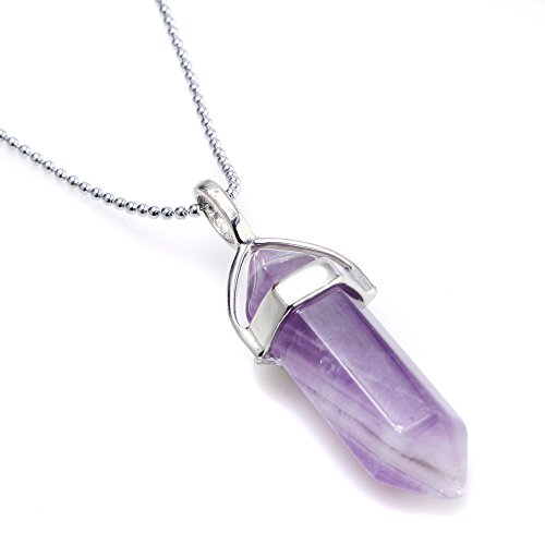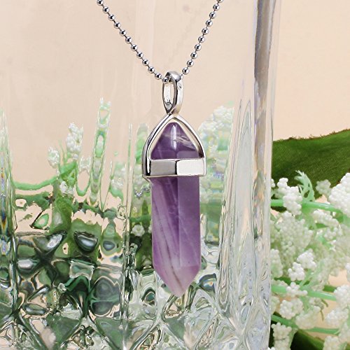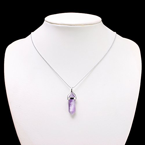 - Feature : Power Healing Gemstones Pendant with White Gold Tone Plated / 18 Inches White Gold Tone Plated Necklace Chain (1mm) / Pendant Size: 38 x 12 mm / Every Piece is Unique, Size and Color may vary. / Different Designs Available