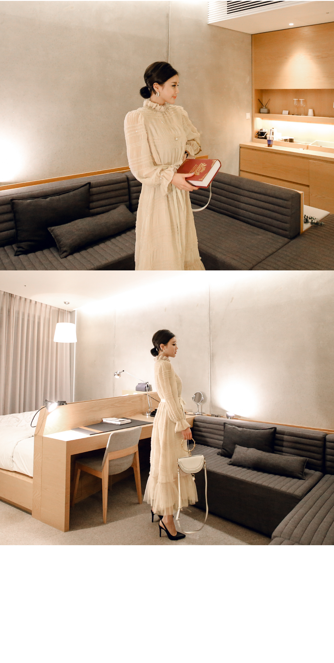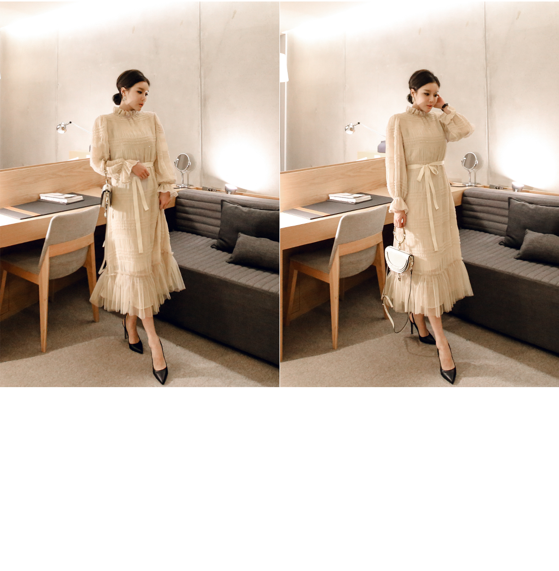 탈착 가능한 끈으로 다양한 연출을 도와줍니다