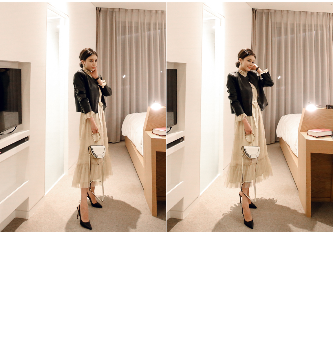 제작에 따라 스팽글의 위치는 다를 수 있으나 전체적인 스타일은 같아요
