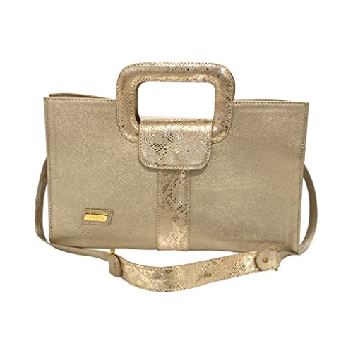 Strike a bold, elegant impression with the Gaspy Elena Women's Formal Evening Handbag. Ideal for formal events such as cocktail parties, proms, and weddings, this fashion-forward handbag illuminates your evening attire with its dainty contrasting accents and shimmery finish. The bag is exquisitely crafted from 100% Colombian cow leather and features a 100% textile lining, offering a luxurious look and feel at a great price. With its compact design and trio of interior pockets, this bag is the perfect choice for carrying your cellphone, wallet, makeup, and other essentials. The removable crossbody strap and petite handles offer multiple wearing options (and up to a 17-inch shoulder strap drop), so you can accessorize your outfit in the manner you want. Like all Gaspy products, this bag was crafted by a passionate, close-knit team of artisans in Colombia. It is available in several distinctive colors and embossed patterns.Feature