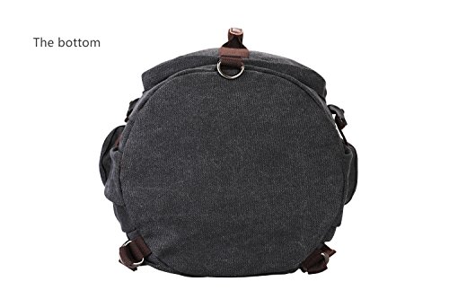 -. Feature : Multi-function Duffle Backpack: Featuring 3 way to use, it's easy to switch from a duffel to a regular backpack or hand carry on; the backpack strap can be hidden when it used as a shoulder bag/crossbody bag, perfect for carry on on flights for short trips. Zippers are nice and sturdy / Large Capacity: 7 pockets - one main zipper compartment, one front zipper pocket, two side pockets. One zipper pocket, one notebook compartment and two small open pockets on the inside. You can hold Kindle, notebook or iPad-mini & Tablets Upto 8.1-Inch in the front pocket; water bottle and umbrella on the side pockets; make up, clothes, toiletry, books, A4 binder and other travel essentials one main pocket; put wallet, keys on inner zipper pocket; credit card on two open pockts / Multi-purpose: It can be as your sports bag, your travel knapsack, a carry on for overnight trips, as a military or army rucksack, or as your gym bag. Ideal for sprots, travelling and school, you name it / Material: Made of Eco-Friendly 16oz Canvas Material, the characteristic is avirulent insipidity and durable. And decorated with high quality Polyurethane Leather / Dimensions: 11" L x 18.5" H x 10.2 W" / 28 x 47 x 26cm; S-shaped padded shoulder straps make this cool canvas backpack wear comfortable and protect your back when carry something heavy. The crossbody shoulder strap is detachable and adjustable. Please noted that all Yousu bags enjoy 1 year warranty and 30 days free return for no reason