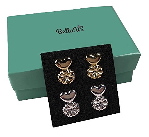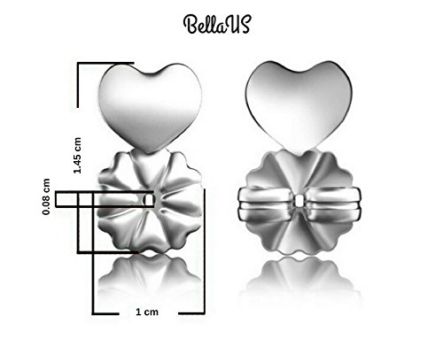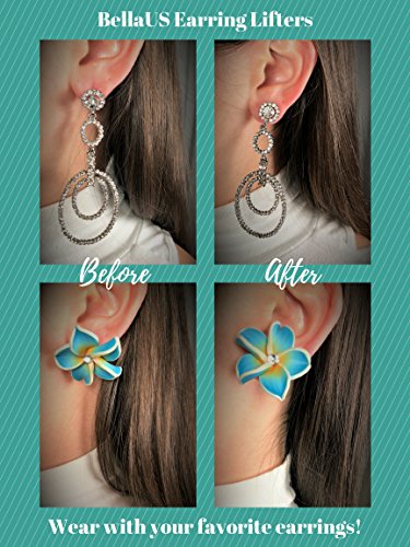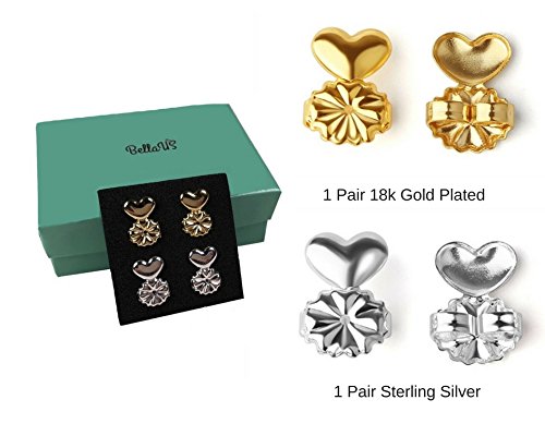 BellaUS Earring Lifters - 2 Pairs Hypoallergenic Adjustable Lifts - 1 pair Sterling Silver and 1 pair 18K Gold Plated - Ear Lobe Support Patches Backs