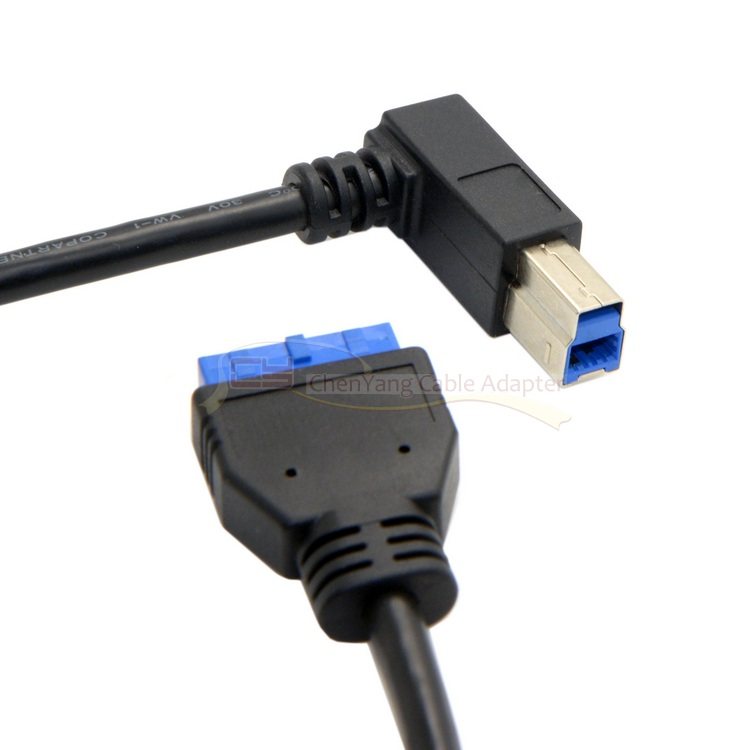 U3-380 USB3.0 motherboard 20PIN to USB 3.0 B male data cable 90 degree elbow adapter cable