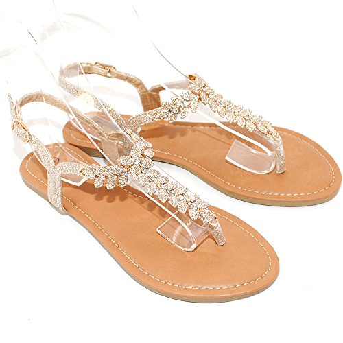 TRENDSup Collection Womens T-Strap Buckle Flats Sandals