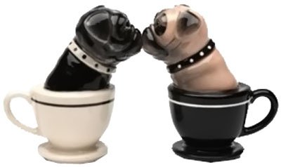 Tea Cup Pugs Magnetic Ceremic Salt and Pepper Shakers