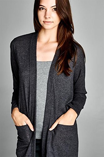 -. Feature : Semi-loose fit, long sleeve, open closure cardigan. / Has pockets at waist. This cardigan is made with medium weight, / brushed knit fabric that has a very soft fuzzy texture, / drapes well and is very warm. This fabric has great stretch. / Made in USA