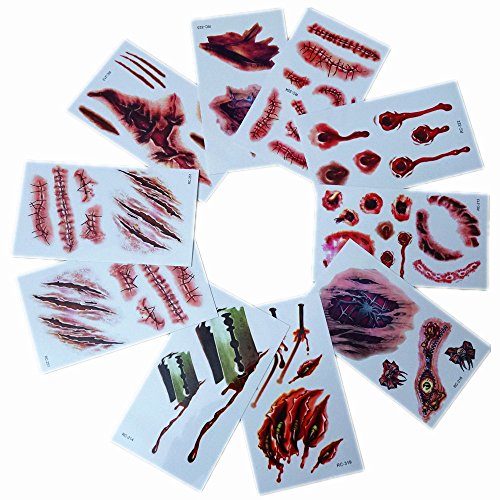 Halloween Simulation Scar Stickers Cosplay Wound Zombie Scars Waterproof Tattoo Stickers (10pcs)