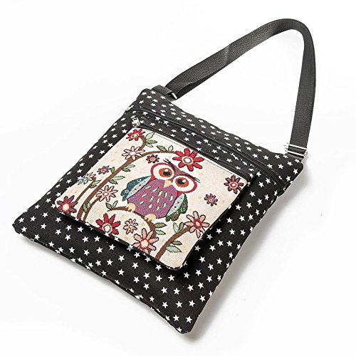 -. Feature : Material: Canvas fabric and polyester lining. Lightweight, portable and durable / Size: 12.9" x 0.3" x 14"(L x W x H), Can put in A4 paper / Cute owl P.R.Inting. Lovely and fashion, unique national style makes you attractive / Zippered Top Closure. It is convenient to hold your small things such as wallet, key, phone / Ideal for women and lady traveling, working, dating, or any other occasions.Best gift choice