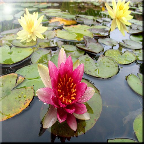 Rikki Knight RK-12intilec-9200 12" X 12" Pink & Yellow Waterlillies Gorgeous Colors Design Ceramic Art Tile
