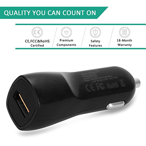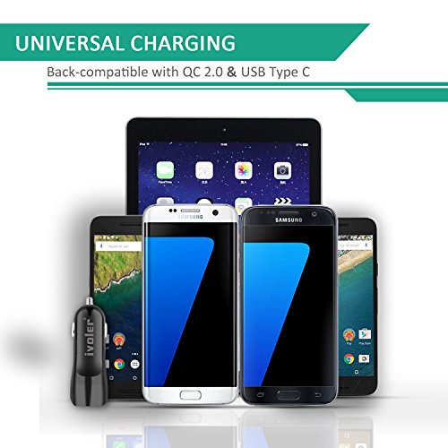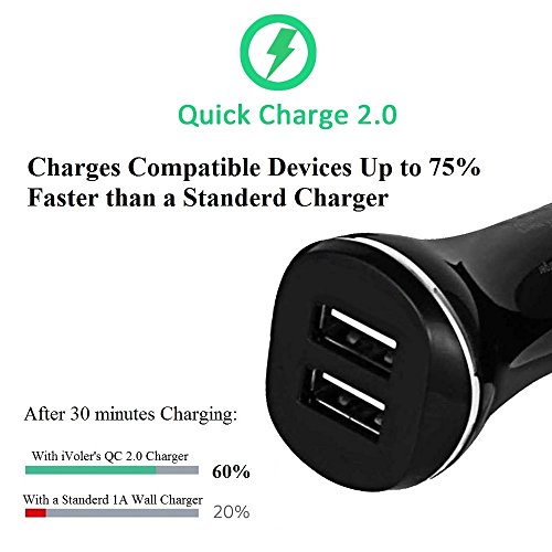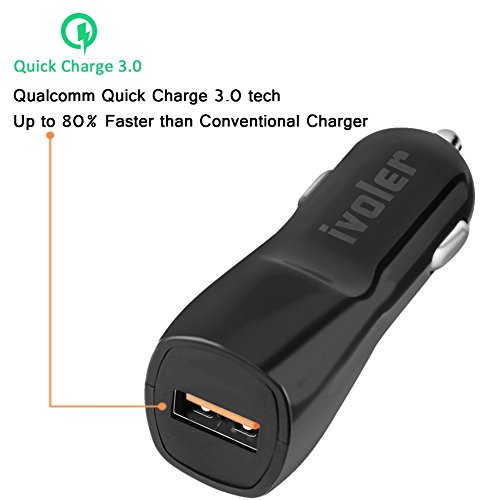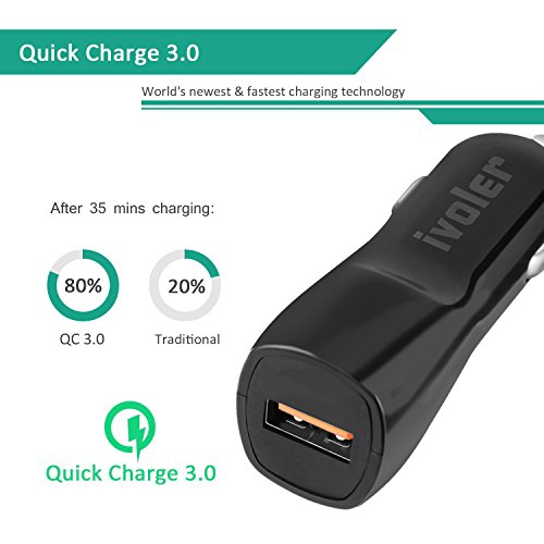 -. Feature : Quick Charge 3.0: The latest, fastest and most efficient USB charging technology in the world. Up to 4X faster than standard chargers, able to charge compatible devices to 80% in just 35 minutes. / Compatibility: Backwards compatible with all versions of Quick Charge technology (1.0, 2.0 & 3.0). Also compatible with USB-C and provides standard charging for non-Quick Charge devices. Charges all non-Quick Charge 3.0 phones and tablets at their normal speed with Qsmart Adaptive Charging Technology. / Quick Charge 3.0 & Quick Charge 2.0 Compatible Devices: Samsung Galaxy S7/S7 Edge/S6 /Edge/Edge Plus,Note 5/4/Edge, LG G5/G4/V10/ G Flex 2,Motorola Droid Turbo/ Droid Turbo 2/ Droid Maxx 2/Moto X(2014), Motorola X Pure Edition, Nexus 6, HTC One A9/M8/M9, Sony Xperia Z4, Z4 Tablet, Z3, Z3 Compact, Z3 Tablet Compact, Z2 Tablet & More / Safety Guarantee:CE,FCC & RoHS certified design, A grade materials and premium circuitry ensure its best performance and reliability.Multiple built-in safeguards protect against over-current, overcharging and overheating for safe and fast charging. / What You Get: iVoler Premium 18W USB Car Charger with Quick Charge 3.0 Technology, 20AWG 6.6FT/2m USB Micro USB Cable, Welcome Guide, 18-Month Hassle-free Warranty and Friendly Customer Service.