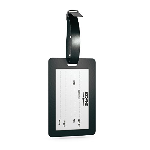 -. Brand : Shacke -. Feature : 2.75 x 4 in. Lage Tags - 2 Tags in 1 Set / Made of Sturdy High Quality PVC Plastic Includes Genuine Leather Straps / Reversible Identification Card Helps To Hide Your Personal Information / Perfect for Men, Women, Kids, Airline Travel, and Cruise Ship Travel / Fun Unique Design With a Variety of Choices To Fit your Custom Personality -. ProductGroup : Apparel -. ProductTypeName : LAGE -. Title : Shacke Lage Tags with Genuine Leather Strap