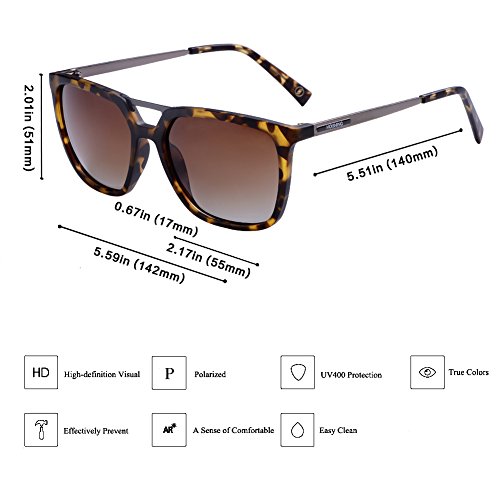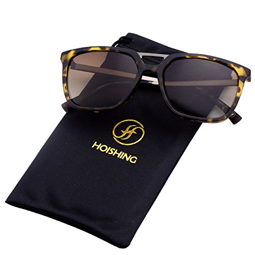 Hoishing Hot Retro Square Polarized Sunglasses Plastic Frame with Metal Temple For Women/Men