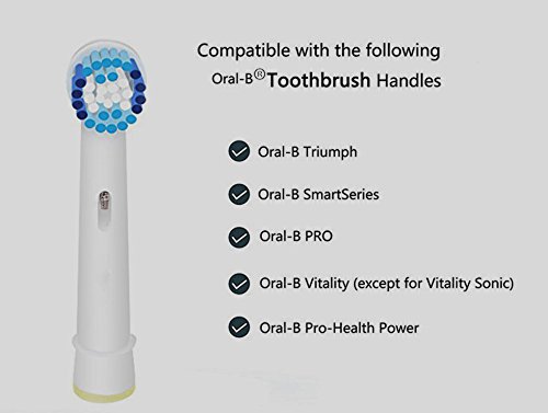 -. Binding : Misc. -. Brand : zagtag -. Feature : This generic replacement brush head can be used for most Standard Oral B Electric Toothbrushes except for Oral B Sonic Toothbrushes( see full list below) / The Dupont soft bristles provides good cleaning of tooth surfaces and deep between the teeth. / The brush head is made to meet the highest health and safty standard. It is designed to get into hard- to-reach areas and achieve exceptionally good cleaning. / The brush works exactly like your original brush head that delivers comfortable brushing experience while protecting your gums, removing plaque and reducing gingivitis. For optimal performance dentists recommend to replace the brush head every three months. / In one pack there are 4pcs of brush heads respectively in a different color. It is very convenient to share the brush heads among family members. -. IsAdultProduct : 0 -. Label : zagtag -. Manufacturer : zagtag -. MPN : 613131953932 -. PackageQuantity : 4 -. PartNumber : 613131953932 -. ProductGroup : Beauty -. ProductTypeName : BEAUTY -. Publisher : zagtag -. Studio : zagtag -. Title : Generic Replacement Toothbrush Heads for Braun Oral B SB-20A 4pcs/Pack