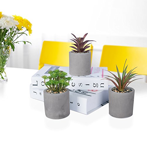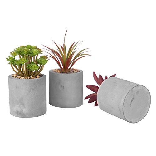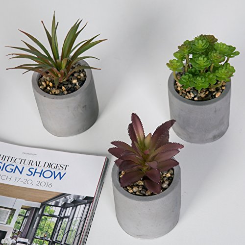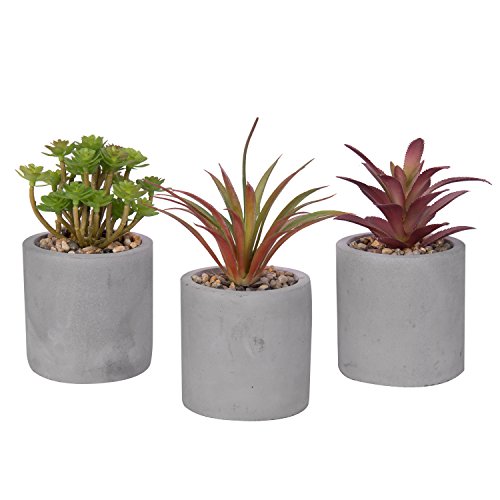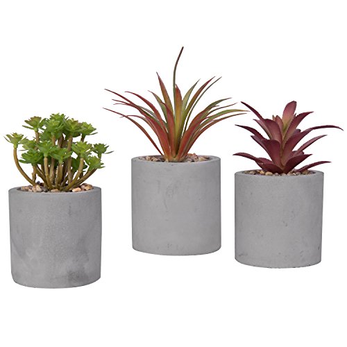 Set of 3 Mixed Color Artificial Succulent Plants in Modern Round Gray Clay Pots