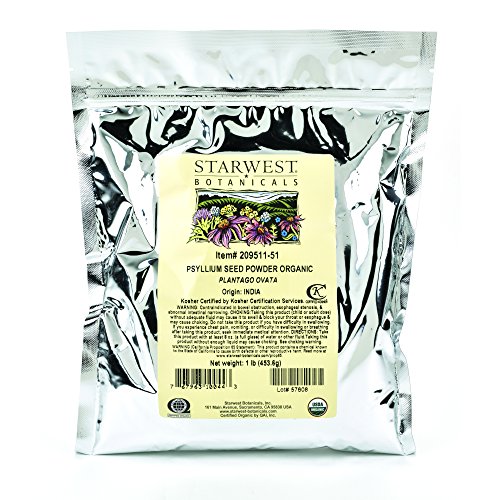 -. Binding : Misc. -. Brand : Starwest Botanicals -. EAN : 0767963100443 -. Feature : Latin/Botanical Name: Plantago ovata / Origin: India / USDA Certified Organic / Kosher Certified / Warning: Contraindicated in bowel obstruction, esophageal stenosis, & abnormal intestinal narrowing. CHOKING: Taking this product (child or adult dose) without adequate fluid may cause it to swell & block your throat or esophagus & may cause choking. Do not take this product if you have difficulty in swallowing. If you experience chest pain, vomiting, or difficulty in swallowing or breathing after taking this product, seek immediate medical attention. -. IsAdultProduct : 0 -. Label : Starwest Botanicals, Inc. -. LegalDisclaimer : **Satisfaction Guarantee If you are not 100% satisfied with your order, be assured that, with your assistance, we will resolve the problem or promptly issuing a refund, credit, or replacement. However we do not refund shipping charges. Provide your order number and reason for the return by contacting us through Amazon's messaging service to obtain an RMA number which must be marked on the outside of each return package. No credit or returns are allowed after 60 days from the invoice date. -. Manufacturer : Starwest Botanicals, Inc. -. MPN : 767963100443 -. PackageQuantity : 1 -. PartNumber : 767963100443 -. ProductGroup : Grocery -. ProductTypeName : GROCERY -. Publisher : Starwest Botanicals, Inc. -. Size : 1 pound -. Studio : Starwest Botanicals, Inc. -. Title : Starwest Botanicals Organic Psyllium Seed Powder, 1 Pound -. UPC : 767963100443