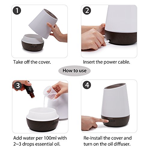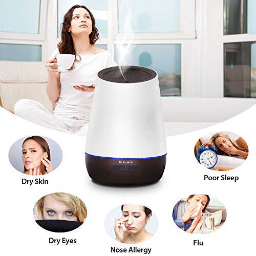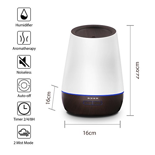 - 🎅7 Color Light and 4 Timer Setting: 7 colors cycle through to create calm and relaxing environment; Furthermore, 2 mist output options to choose from, strong and standard mist; 4 timer settings: 2H/4H/8H/Continuous. (Note: The color light can't be fixed.)