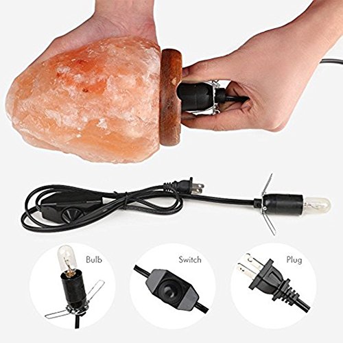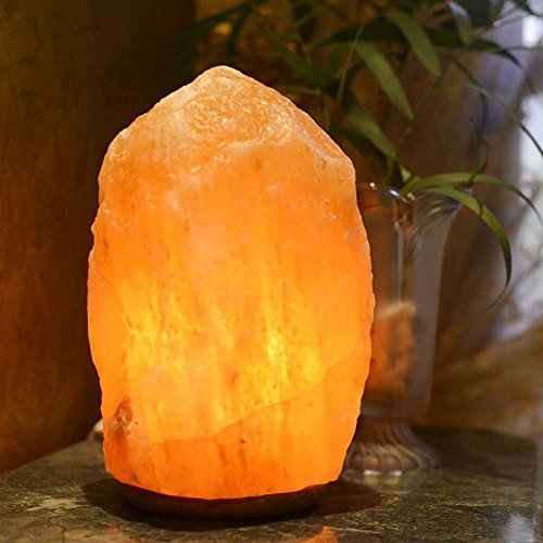 Himalayan Rock Salt Lamp 7-10 inches with Wood Base, Dimmer Switch & Bulb