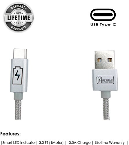 -. Title : Type C - USB Cable by SPEED CHARGER ZONE | (Silver) | Smart LED Indicator, Incredibly Fast Charging, Tough Durable Construction, LT WARRANTY! Length 3.3 Ft (1M)