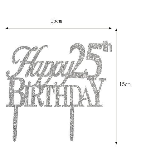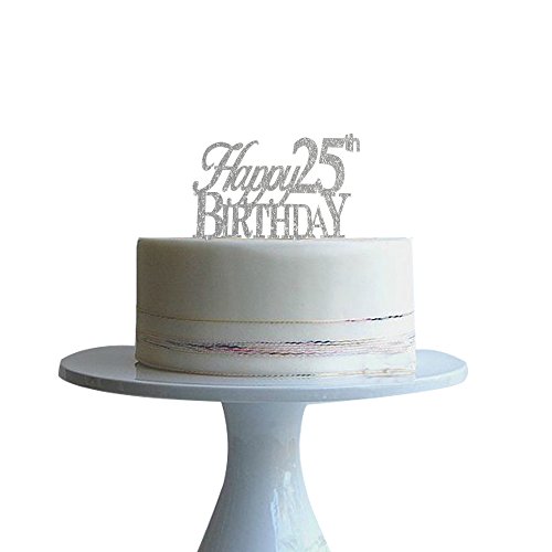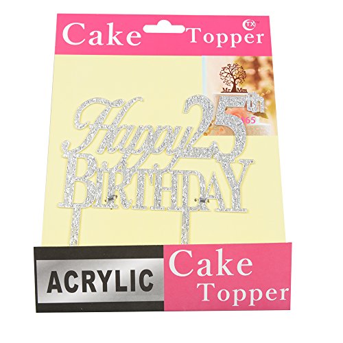 Happy 25th birthday cake topper for 25th birtday party decor silver acrylic