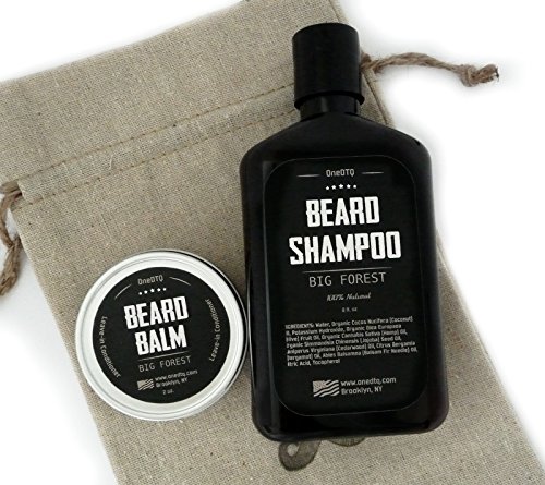 Big Forest Beard Growth Kit: Beard Shampoo & Beard Balm - 100% Natural & Organic Facial Hair Care - In a Mustache Stamped Linen Pouch