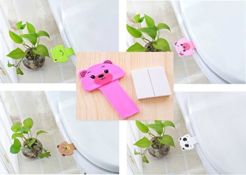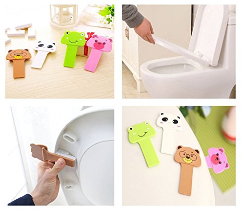 -. Feature : *small compact, Easy to carry, must for Sanitary Conditions are Required : Home, Work, Hotel, Retail Stores, Office, Restaurant, and much more!lovely design make your places more funny / * pack included(set of 8):2pcs green frog. 2pcs brown bear;2pcs pink pig;2pcs white panda.(1pcs includ 2ps Adhesive Sticker) / *Installs easily Peel Stick. Place the toilet lifter on the bottom of the toilet seat, and lift by the handle. / *Affordable alternative option.Constructed of durable, lightweight plastic and easy to clean.Firmly adhesive with the toilet seat,and will not slip or move out of place / * design allows it to fit any toilet seat or lid.Flat and Curve undersides.Never touch the seat again. Lift! Raise! Lower! The CLEAN Way! (ESPECIALLY Family with kids)It can help you keep your hands clean and germ-free.To prevent the hands contacting with and toilet directly, effectively reducing bacteria