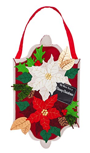 Evergreen Holiday Poinsettias Outdoor Safe Burlap Door Decor