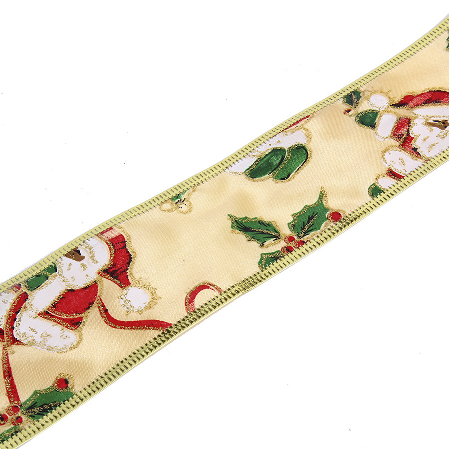 港恒圣诞节装饰品 200cm金色印画圣诞老人图案圣诞彩织带 10g