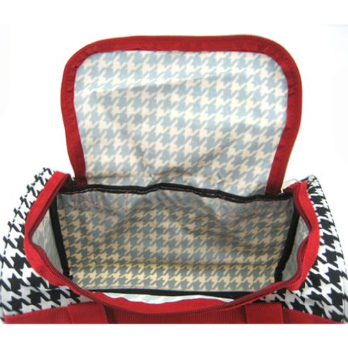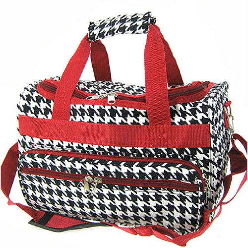 -. Brand : World Traveler -. ClothingSize : 13-inch -. Color : Houndstooth - Red -. Department : womens -. EAN : 0763598184643 -. Feature : Adjustable, detachable non-slip padded shoulder strap / U-top opening provides easy access to roomy zipper secured main compartment / Metal feet allows stabiity to bag when setting down and provides bag floor not to touch floor directly to get dirty / Front exterior zip pocket with two exterior end slit pockets / Silver pewter hardware -. Model : T13-606-R -. MPN : T13-606-R -. NumberOfItems : 1 -. PackageQuantity : 1 -. PartNumber : T13-606-R -. ProductGroup : Apparel -. ProductTypeName : LAGE -. Size : 13-inch -. Title : World Traveler Red Houndstooth Duffle Bag 13-inch -. UPC : 763598184643