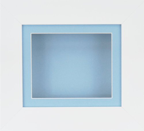 -. Title : BabyRice Deep Box Display Frame for 2D 3D Art Objects Medal Keepsake Baby Casts 1st Bootees Flowers White / Blue Mount / Blue backing