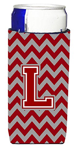 Letter L Chevron Maroon and White Ultra Beverage Insulators for slim cans CJ1049-LMUK