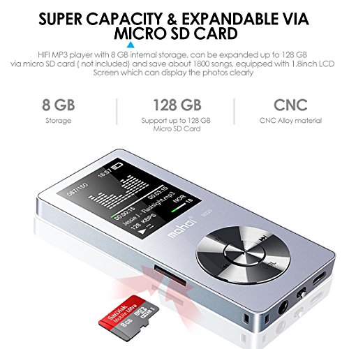 Hohe Speicherkapazitat: dieses Mini-Musik-Spieler ist eingebauten 8 GB Speicher, Unterstutzung erweiterbar bis zu 128 GB durch micro SD-Karte konnen Sie ca. 20.000 Lieder speichern