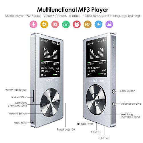 Multifunktion: dieser tragbare MP3 Musik Player mit Metallgehause, wunderschone Textur und verlustfreien Ton, konnen Sie es als Diktiergerat, Wecker, Video, FM-Radio, e-Book, Stoppuhr, Musik-Player, Foto-Viewer.... es unterstutzt Musik-Formate: MP3, MP4, WMA, OGG, APE (Normal / schnell), FLAC, WAV, AAC, ACELP, perfekte Werkzeug fur Klasse, Vortrage, Interviews und etc.