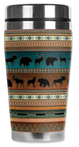 Mugzie Indian Blanket Travel Mug with Insulated Wetsuit Cover, 16 oz, Black