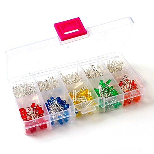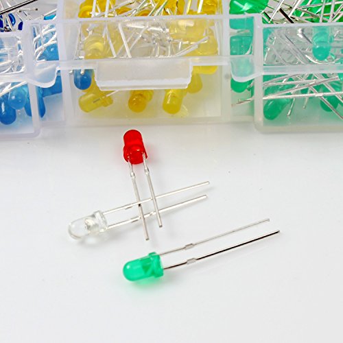 300pcs 3mm LED Light Emitting Tube Kits. Color Shell: Red Blue Yellow Green Orange (Each Type of 30pcs), Transparent Shell: Red Blue Yellow Green White (Each Type of 30pcs)