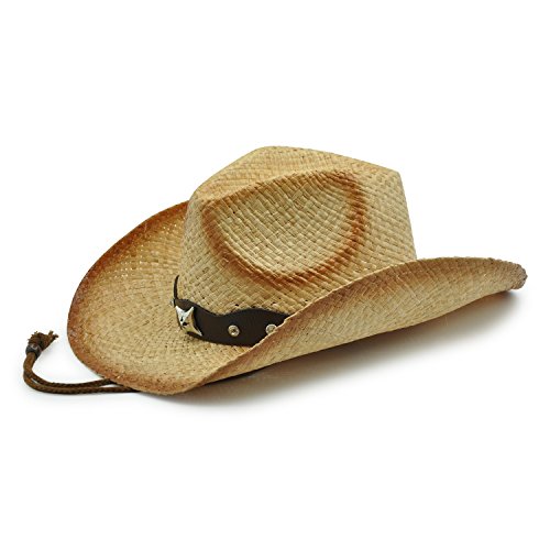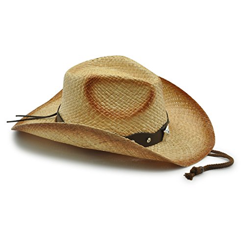 - Outback 4 is made of 100% raffia drifter style cowboy hat. Offering one size fits most band 3.5" brim and wide leather studded conch.