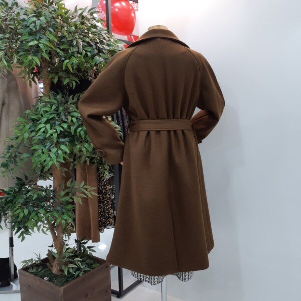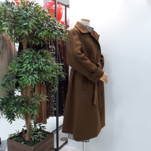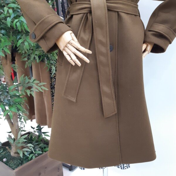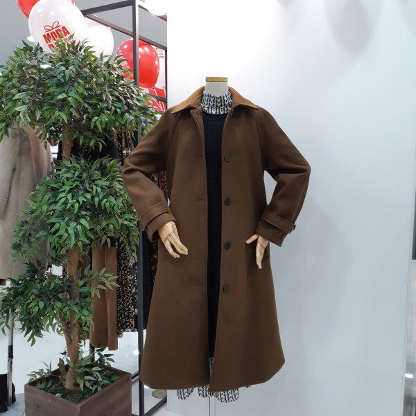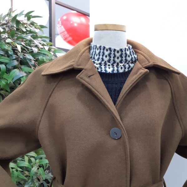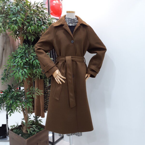 천안모다아울렛 멜로디가든2018년 겨울신상 코트입니다어깨선이 사선 절개와 스판이 있어 편안하고 A라인핏과 허리벨트 포인트가 예쁘고 카키빛도는 진한 브라운 색상이 고급스러운 제품입니다