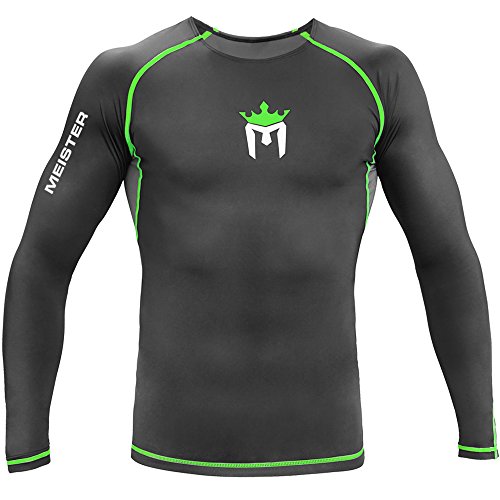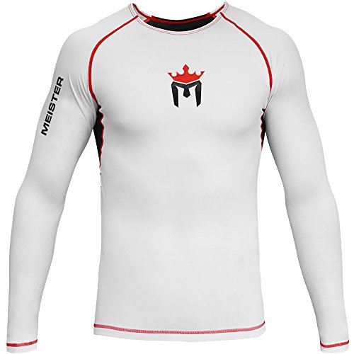 Studio : Meister MMA Publisher : Meister MMA Binding : Misc. Product Description Meister MMA's New Rush Long Sleeve Rash Guard is unlike any rash guard you own. Sleek, comfortable and ideally fitted for athletes, the Rush Rash Guard will immediately become your go-to base layer. Where others cut corners, we started with the highest quality materials in the market and tested fabric combinations to determine the best combination for comfort and durability: 85% Nylon / 15% Spandex. The Meister Rush Rash Guard moves with your body without restricting you and protects your skin against mat burn, chaffing and the elements. The Meister Rush Rash Guard is ideal for MMA, Brazilian Jiu Jitsu, Cross-Training, Surfing and other water sports. A rubberized inner waistband liner keeps the waistline in place to prevent ride-up. And, metallic silver lettering and logos give this rash guard additional visibility for night training. Get your new favorite rash guard today, get the Meister Rush Long Sleeve Rash Guard. An incredible value from a company that stands behind their gear! 0