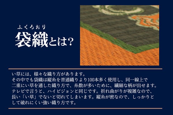 純国産 袋五重織い草マット 『華紋草』 約88×150cm(裏:不織布)