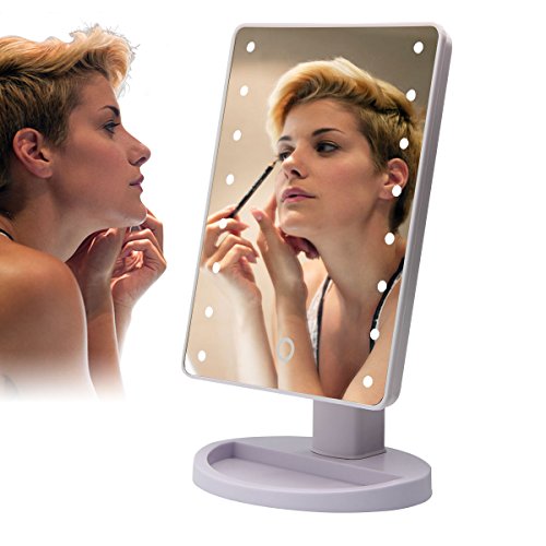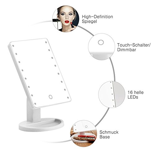 - [180 Degree Rotating Design] The mirrorface can be fixed at any angle. [LED lighting] LED light cosmetic vanity mirror with 16 pieces bright LEDS, satisfying makeup needs all day long, even at nights.