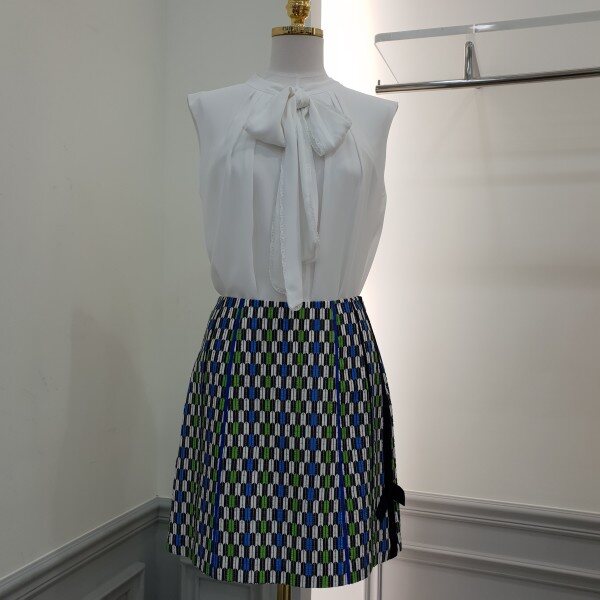 세련된 패턴,밑단옆라인리본으로 귀엽게 표현~총장44cm