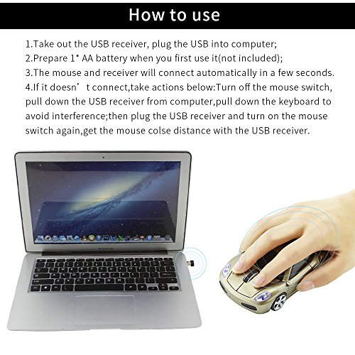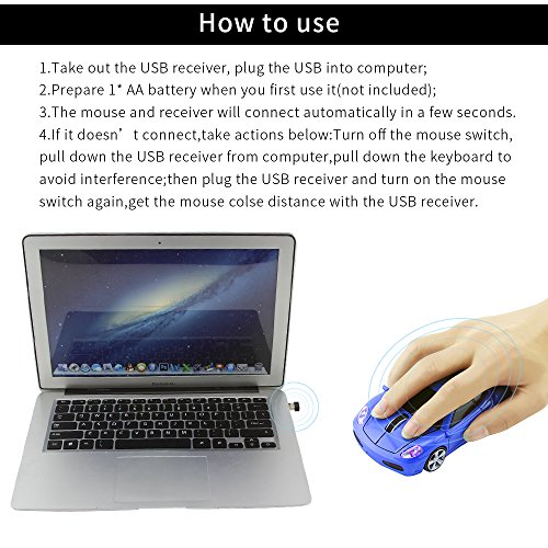 -. Binding : Personal Computers -. Brand : Usbkingdom -. Feature : 2.4GHz digital wireless transmission, operation distance is up to 10 meters / Powered by 1 * AA battery (not included) / Optical tracking technology mouse works on many different surfaces / Compatible with Windows 98/2000/NT/ME/VISTA/WIN7 / Sport Car Style, mini receiver can be contained and easy to carry -. HardwarePlatform : PC -. Label : Usbkingdom -. Manufacturer : Usbkingdom -. MPN : SB0018 -. PartNumber : SB0018 -. Platform : Windows 98 / Windows 7 -. ProductGroup : PC Accessory -. ProductTypeName : COMPUTER_INPUT_DEVICE -. Publisher : Usbkingdom -. Studio : Usbkingdom -. Title : Usbkingdom 2.4GHz Sport Car Shape Mice Wireless Mouse Optical USB Gaming Mouse for PC Laptop Tyrant
