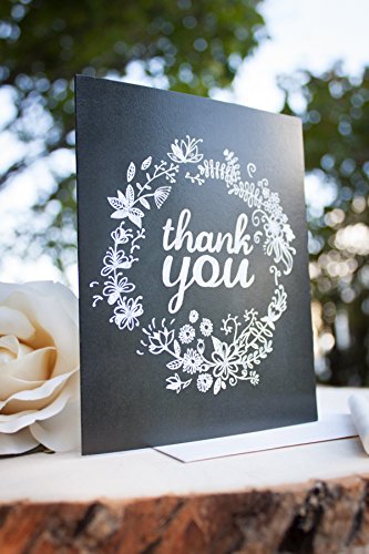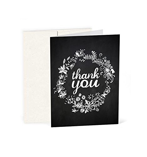 Chalk Art Thank You Cards - Flower Wreath (Set of 10 Cards + Natural White Envelopes) - By Palmer Street Press