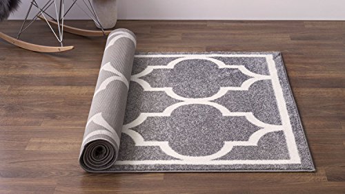 Simple geometric designs help bring any room together. The rug has a light and dark side. If you brush the fibers in one direction, the rug appear a light gray color. Brushing the fibers in the opposite direction gives the rug a darker gray appearance.