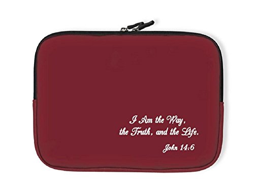 Product Description Easily carry your Bible Study and Church essentials in these fully padded neoprene cases. Our John 14:6 Church Case can accommodate items up to 11" in height. Made of neoprene Case is 11" wide 0